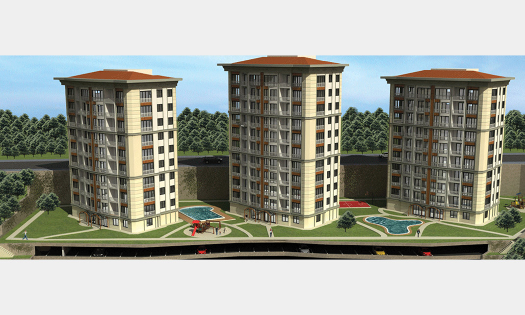 Yılı: 2010 | Yeri: Kağıthane / İSTANBUL | Özellikler: 34.000 m2 16şar katlı 5 ad. Bloktan ve 2 ayrı siteden oluşan konut yapıları